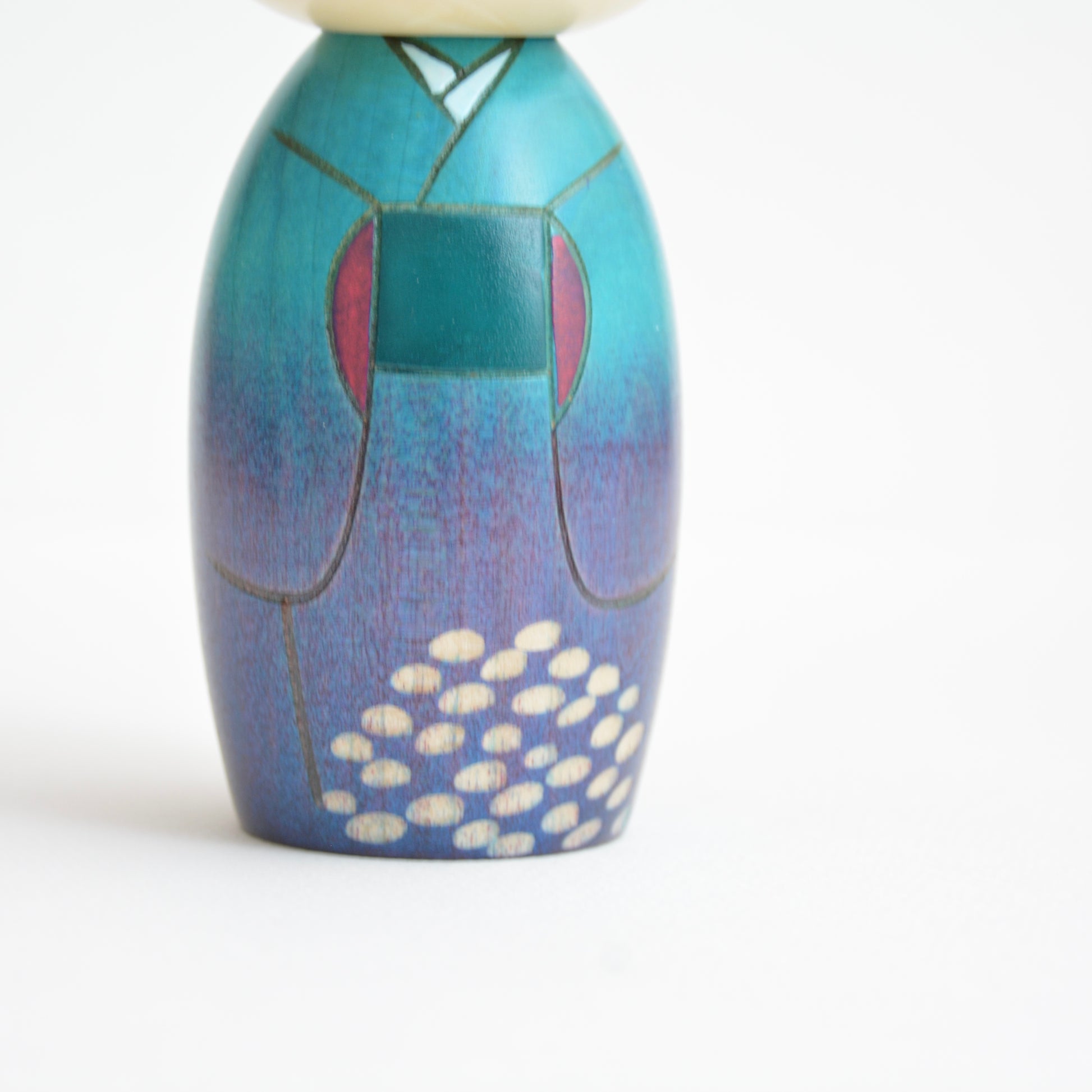 その鮮やかな花の色をまとった女の子のこけしです。